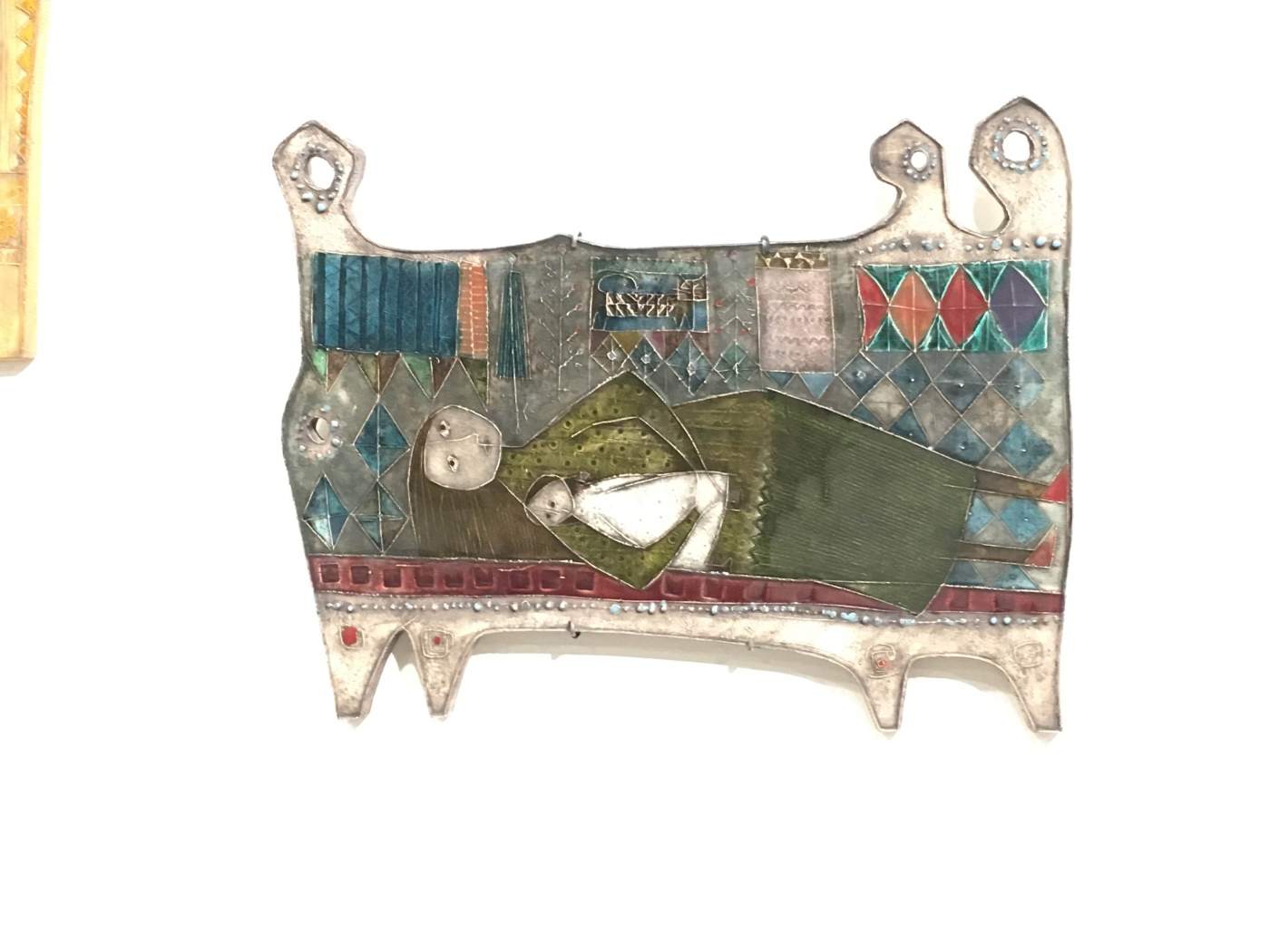 Bryken töissä on erilaisia teemoja, osa töistä on arkeen liittyviä huomioita. Osa kauniita kaupunkikuvia ja joukosta löytyy myös selkeän uskonnollisia töitä. Teokset hehkuvat kauniita värejä ja niitä tekisi mieli kurkottautua silittämään.. Mutta en tietenkään kurkottele kallisarvoisiin teoksiin vaan tyydyn katselemaan ja kuvaamaan kännykällä.