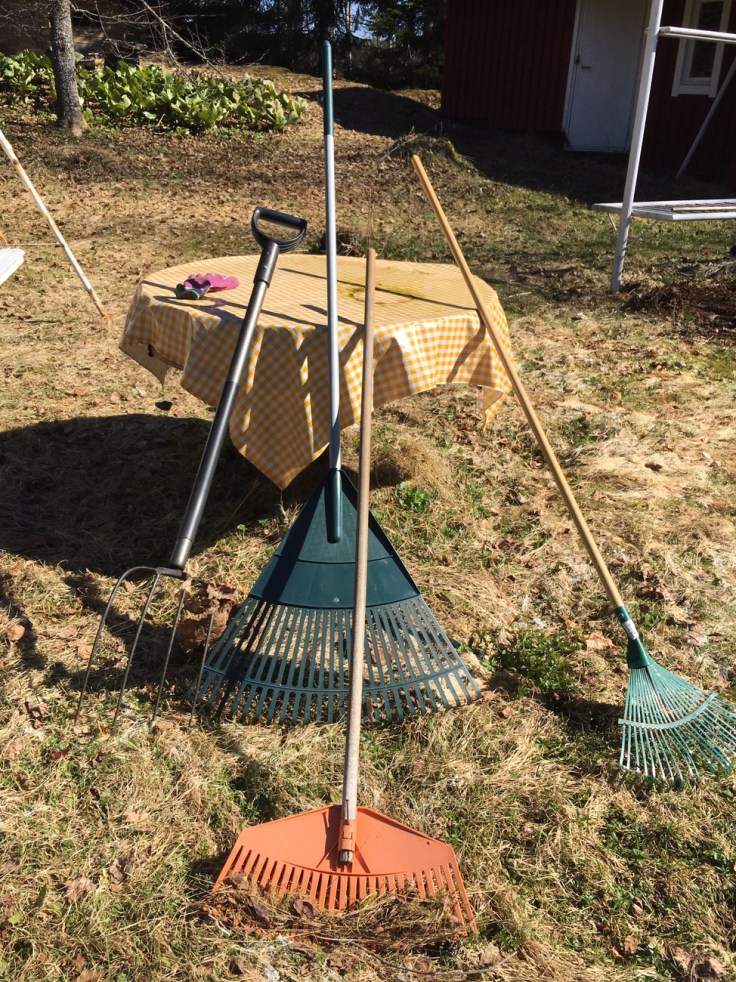 Toisaalta juuri nyt, näinä toukokuun aurinkoisina ja keväisinä, melkein kesäisinä päivinä mökillä puuhastelu on ihan mahtavaa. Mökillä on hiljaista, aurinko lämmittää. Haravoida ja puuhastella saa ihan rauhassa, koska pörriäiset (ikävät paarmat) ovat vielä talviunilla ja itikatkaan eivät ole uuteen kauteen syntyneet.