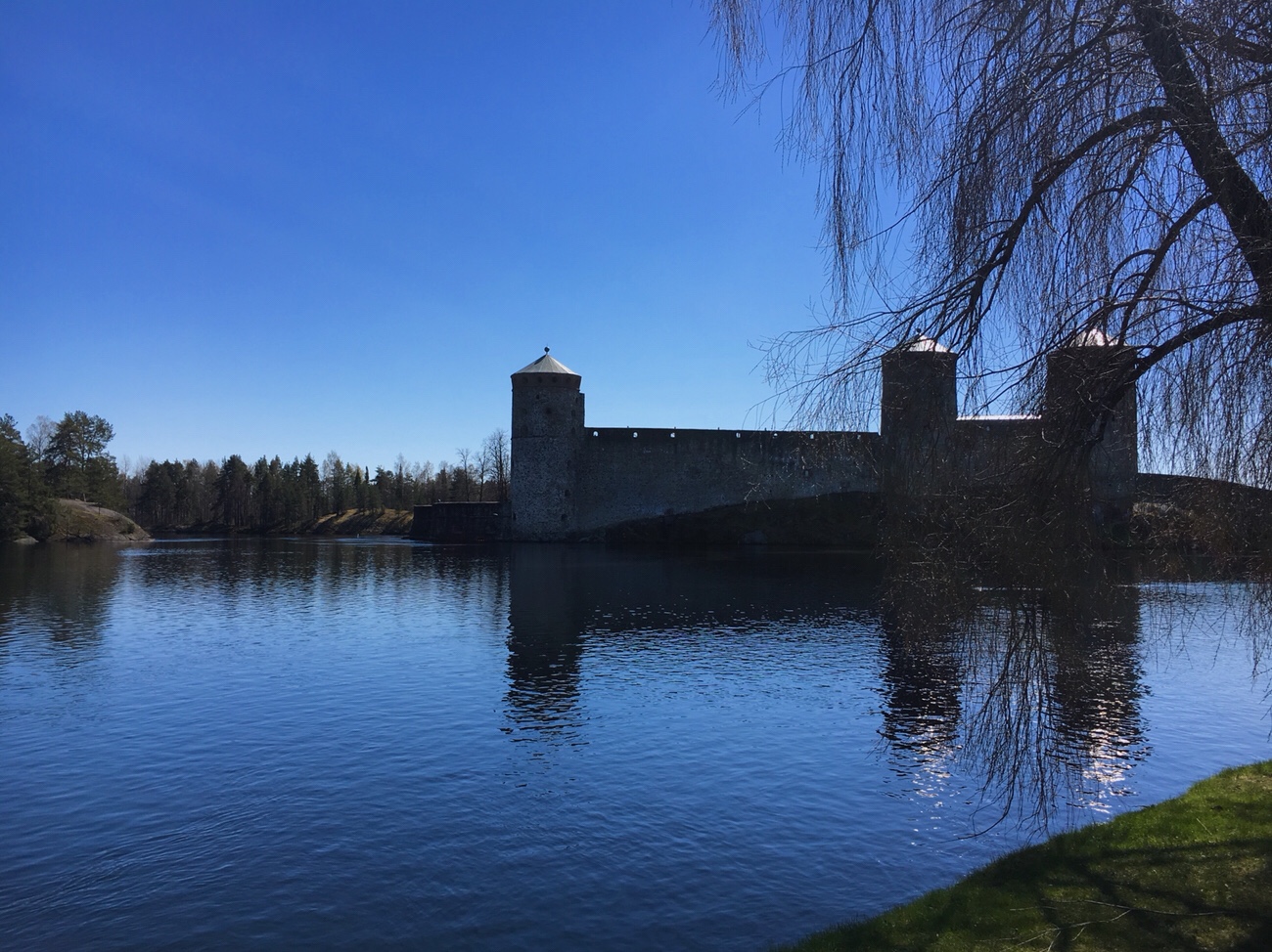 Savonlinna on rakennettu saarille, joten vettä löytyy joka puolelta. Ikävä kyllä vaikka aurinko paistaa lämpimästi ja vesi kimaltaa kutsuvasti, on vesi vielä pirun kylmää. Jäät ovat vasta lähteneet, joten jos veteen polskahtaisi, taitaisi kylmä kangistaa tällaisen tottumattoman.