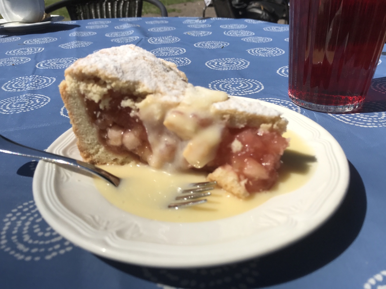 Kahvilakokemus meinasi jäädä väliin, sillä saapuessani iltapäivällä linnoitukseen oli kahvilaan todella pitkä jono. No, päätin etten jää jonottamaan, menin samassa rakennuksessa oleviin pikkuputiikkeihin tutkimaan niiden käsityöanteja. Vaeltelin huoneesta toiseen ja hipistelin ja hypistelin. Lopulta päädyin talon sisällä kahvilajonon päähän ja ilokseni jono oli typistynyt muutamaan ihmiseen, joten päätin jäädä jonottamaan.