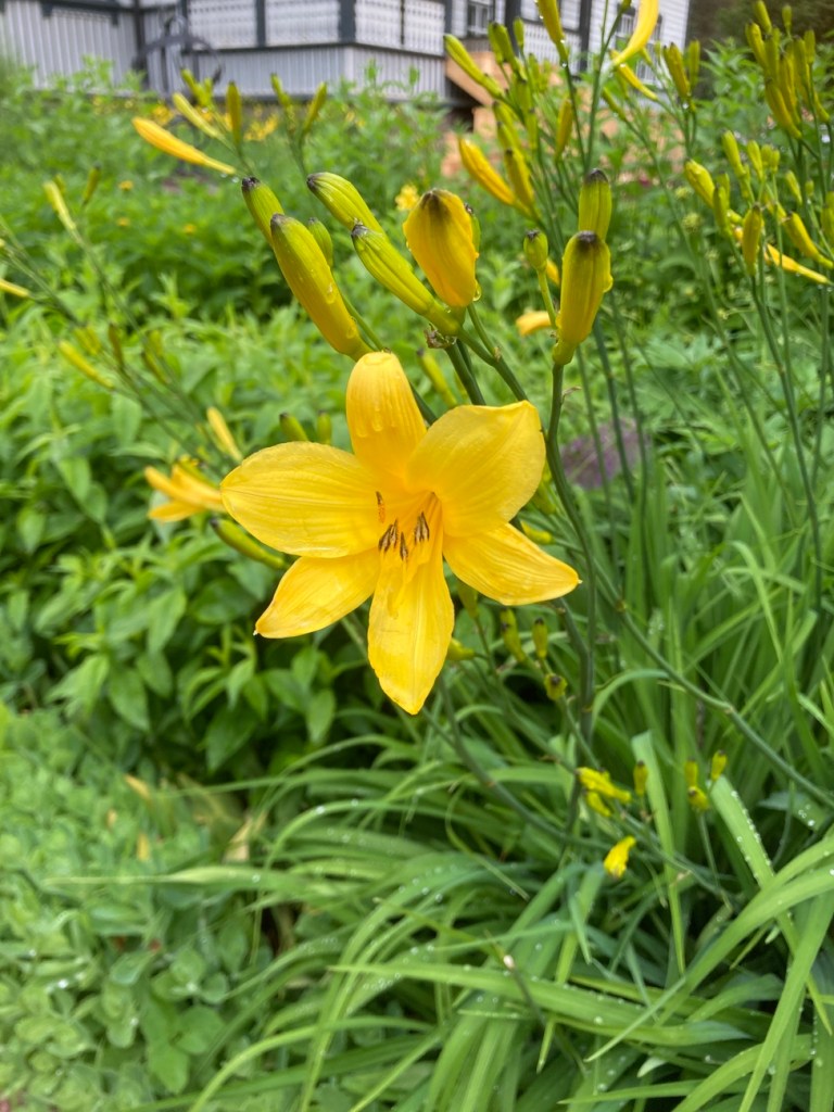 Tehdasmiljööseen kuuluu useita rakennuksia, mutta myös erittäin hyvin hoidettu puutarha ja pihamaa. Näin kesäkuun puolessavälissä puutarha tarjoaa parastaan. Sateen kasteltua kaiken, unikon nuput näyttävät siltä kuin niistä kuoriutuisi keijukaisia tanssiaismekoissaan.