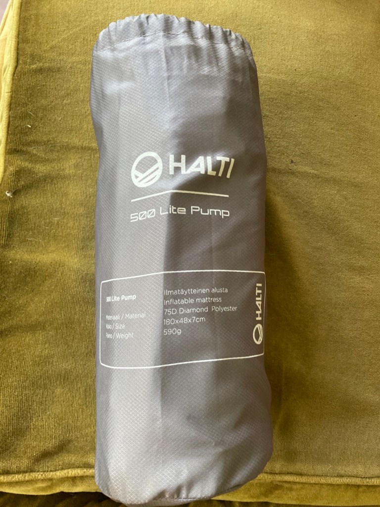 Aloitin jo oheistuotteiden ostamisen, sillä ostin Prismasta Haltin ilmatäytteisen alustan, 500 Lite Pump, jossa viehätti erityisesti patjan paksuus, 7cm, joka on huomattavasti paksumpi kuin monet muut vaihtoehdot. Nyt kun tarkoitus on ehkä road trippailla tai olla useampi yö samassa paikassa, kuitenkin liikkua autolla, niin jokaisen mukaan otettavan tuotteen ei tarvitse olla ultrakevyt. Joten ei haittaa että teltta, alustat, makuupussit/peitot ja tyynyt painavat jonkin verran.