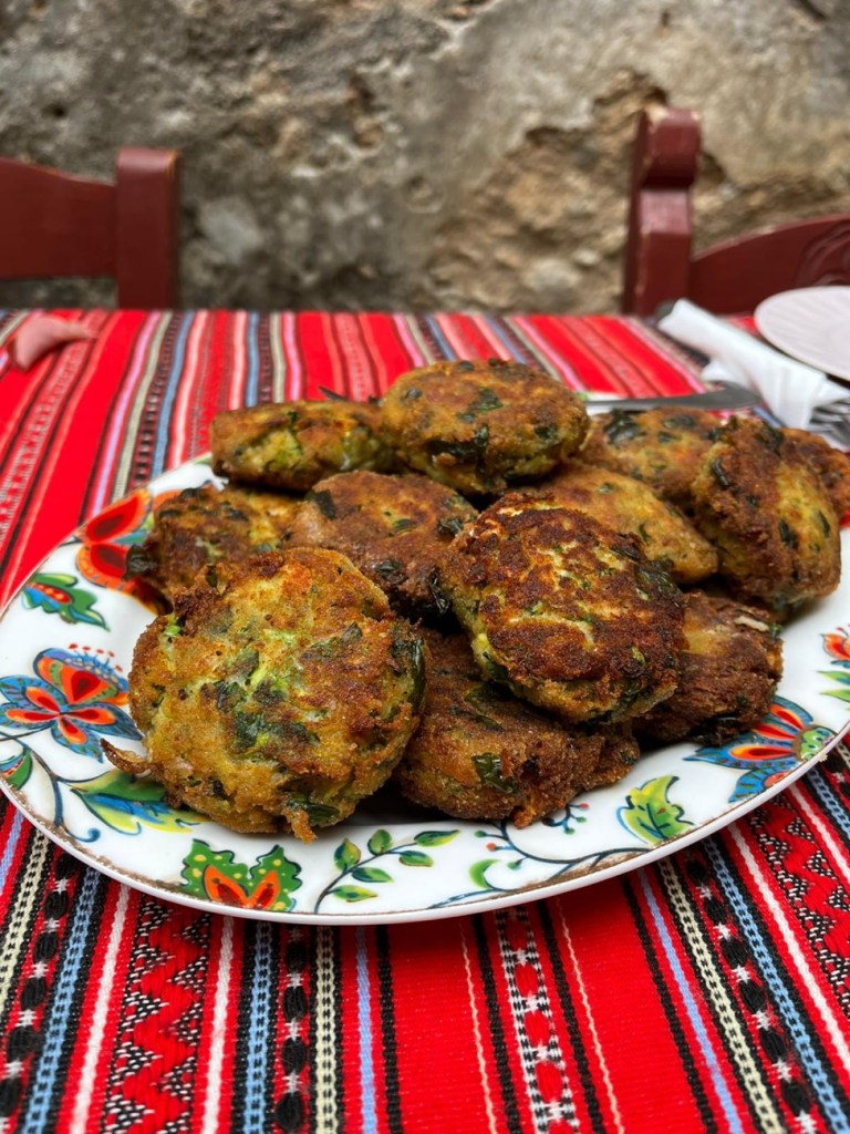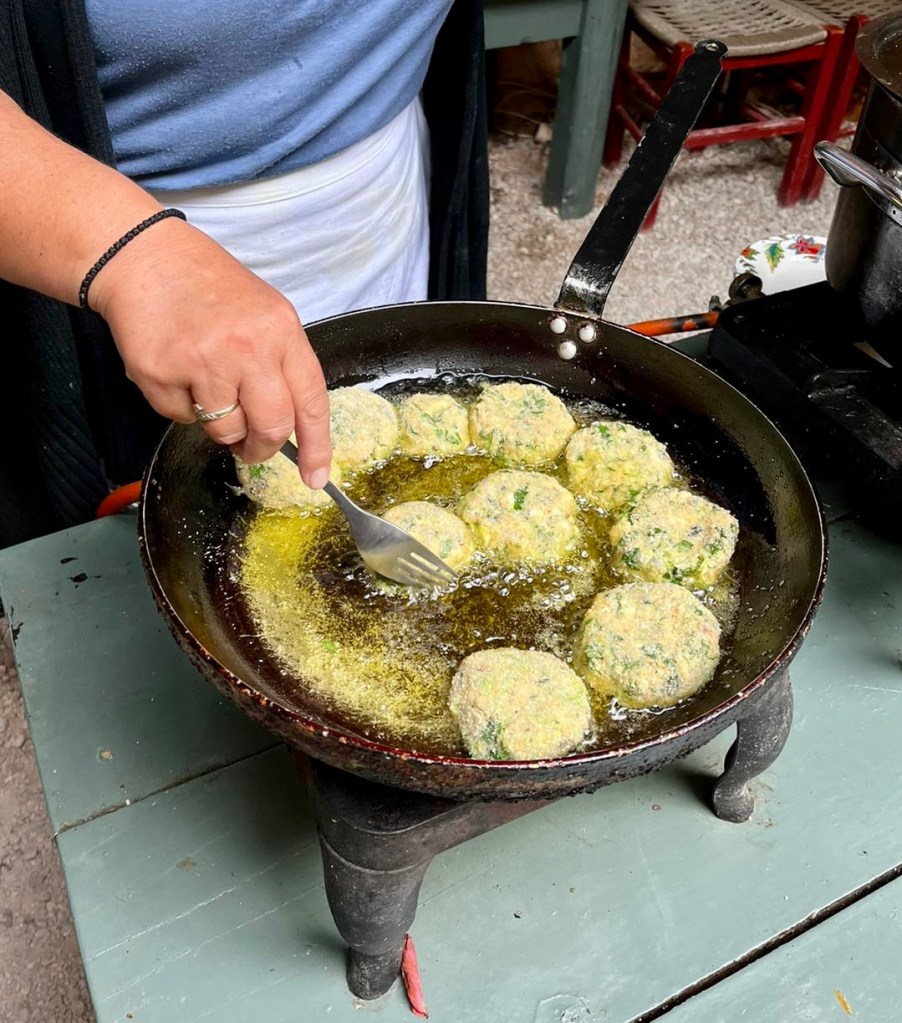 Kolokithokeftedes eli Kesäkurpitsa-feta-yrttipihvit paistettiin oliiviöljyssä