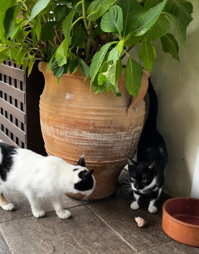 Turisti-infon terassilla oli kissoille ruokaa ja vettä. Toinen kissoista muistutti omaa Marttiamme