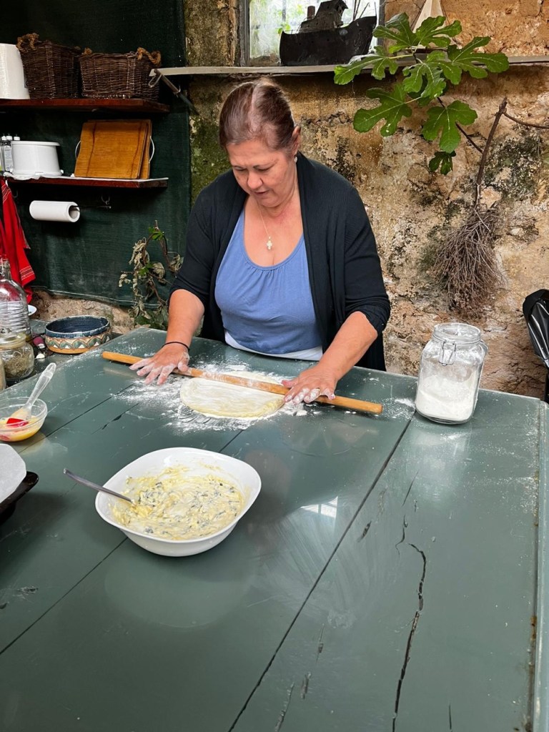 Meidän kokkiemona toimi ihastuttava Koula Barydakis, joka on kirjoittanut kirjan kreetalaisesta ruuasta ja pitänyt kursseja 15 vuoden ajan.