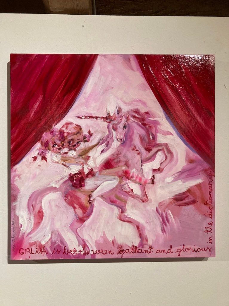 Olet Katja Tukiaisen girl-taiteen fani. Viimeksi näin Katjan taidetta Turussa, nyt vaaleanpunaista tyttövoimaa voi fiilistellä Vääksyssä Danielson-Kalmarin huvilassa.